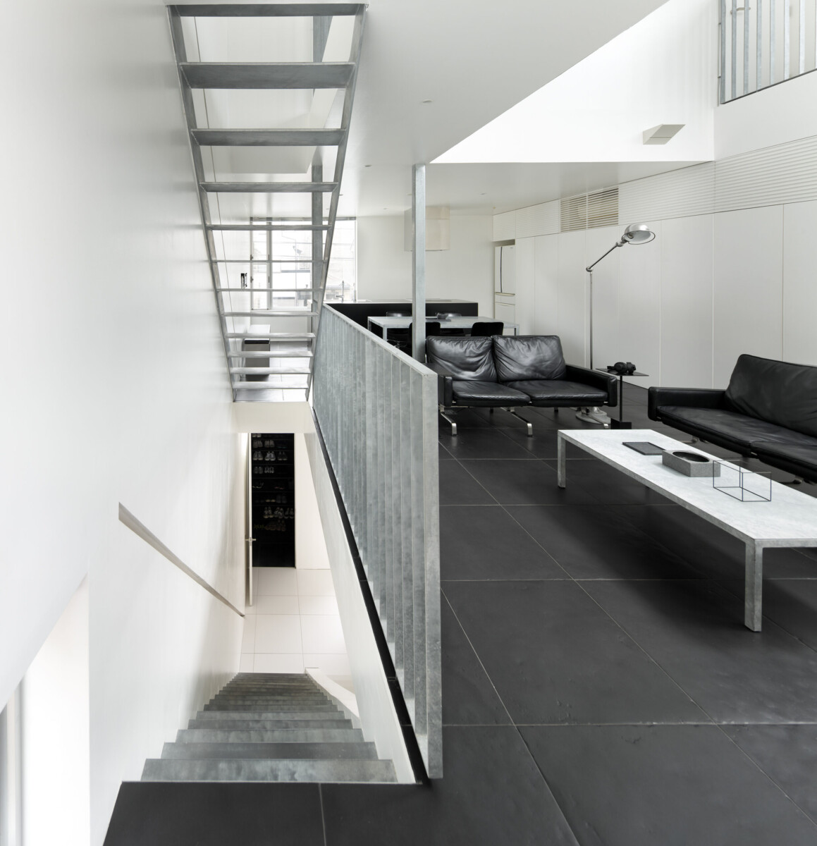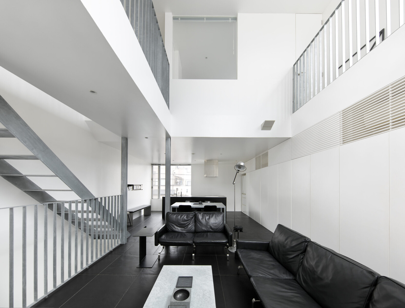 クライアントが買い足した「white」「black」「silver」の家具や備品が、建築の純度を高め、至高の空間が誕生した。