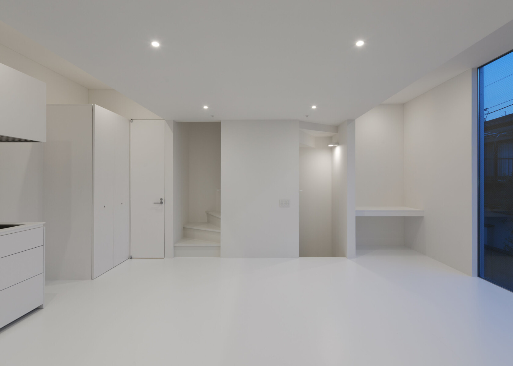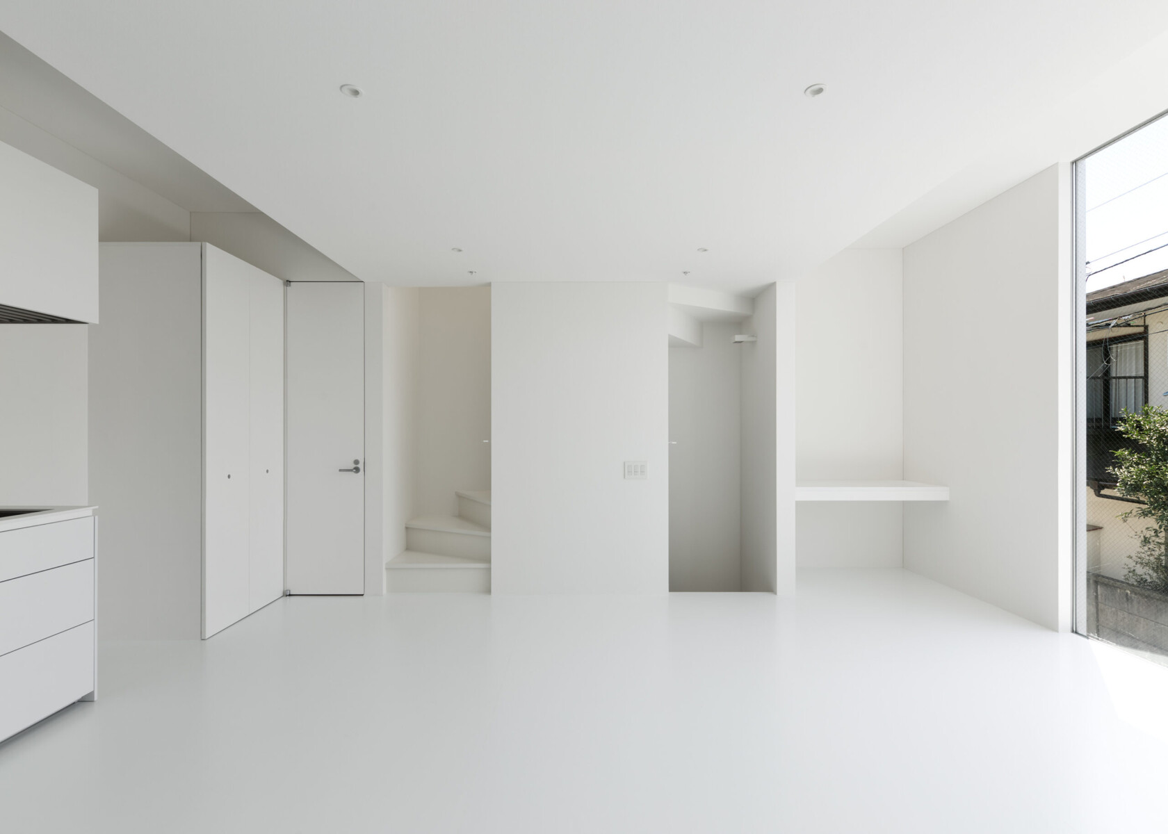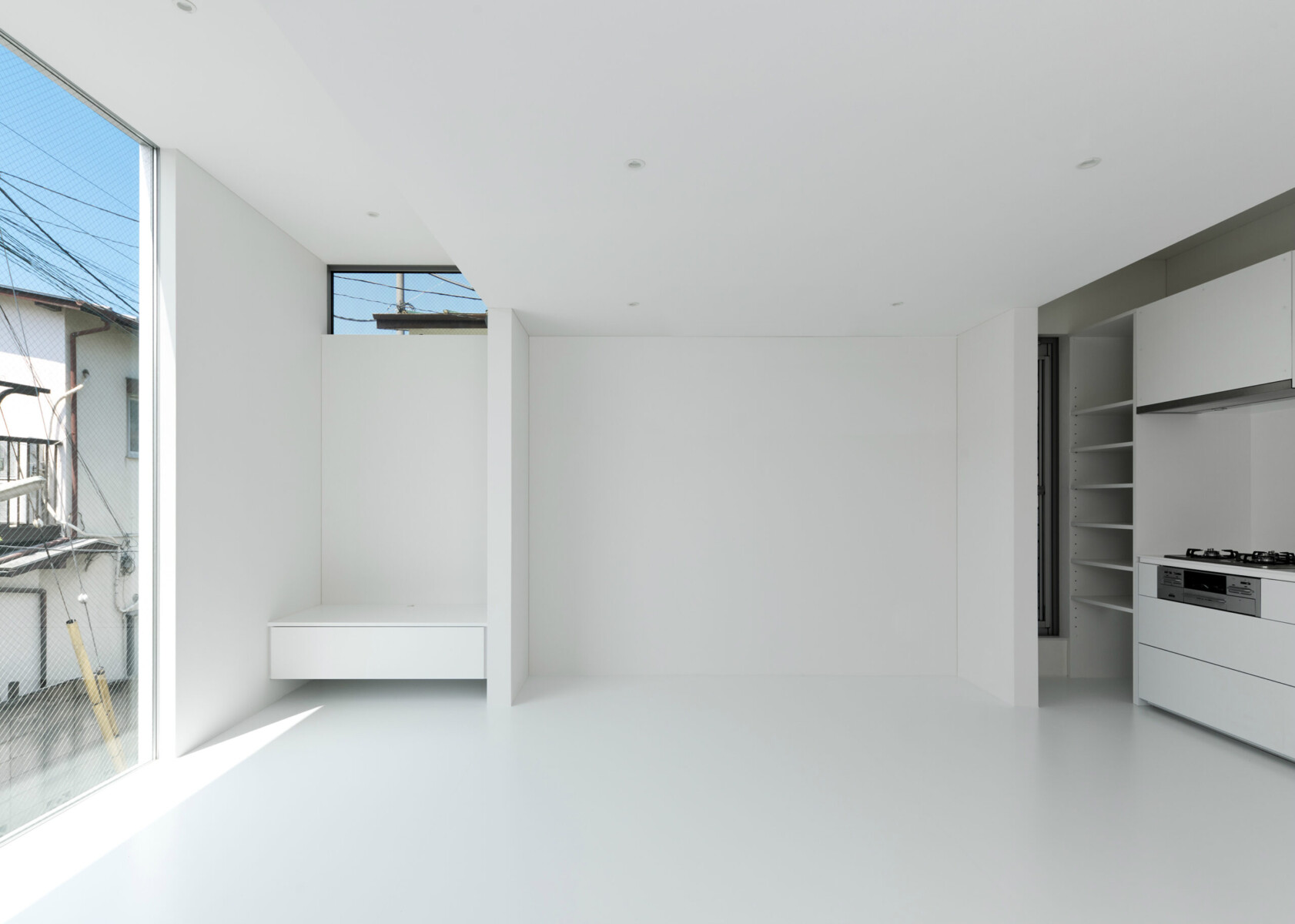 A minimalist white house that is dyed in the color "white" inside and out.