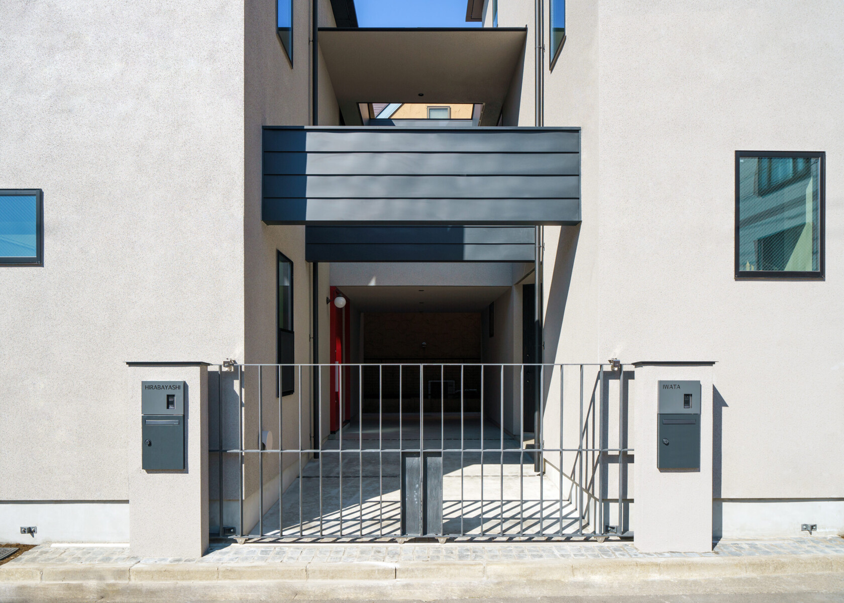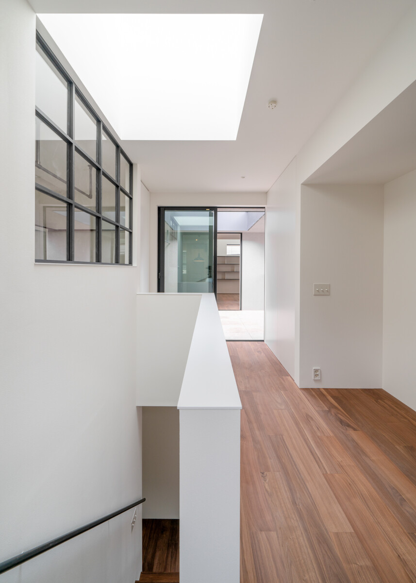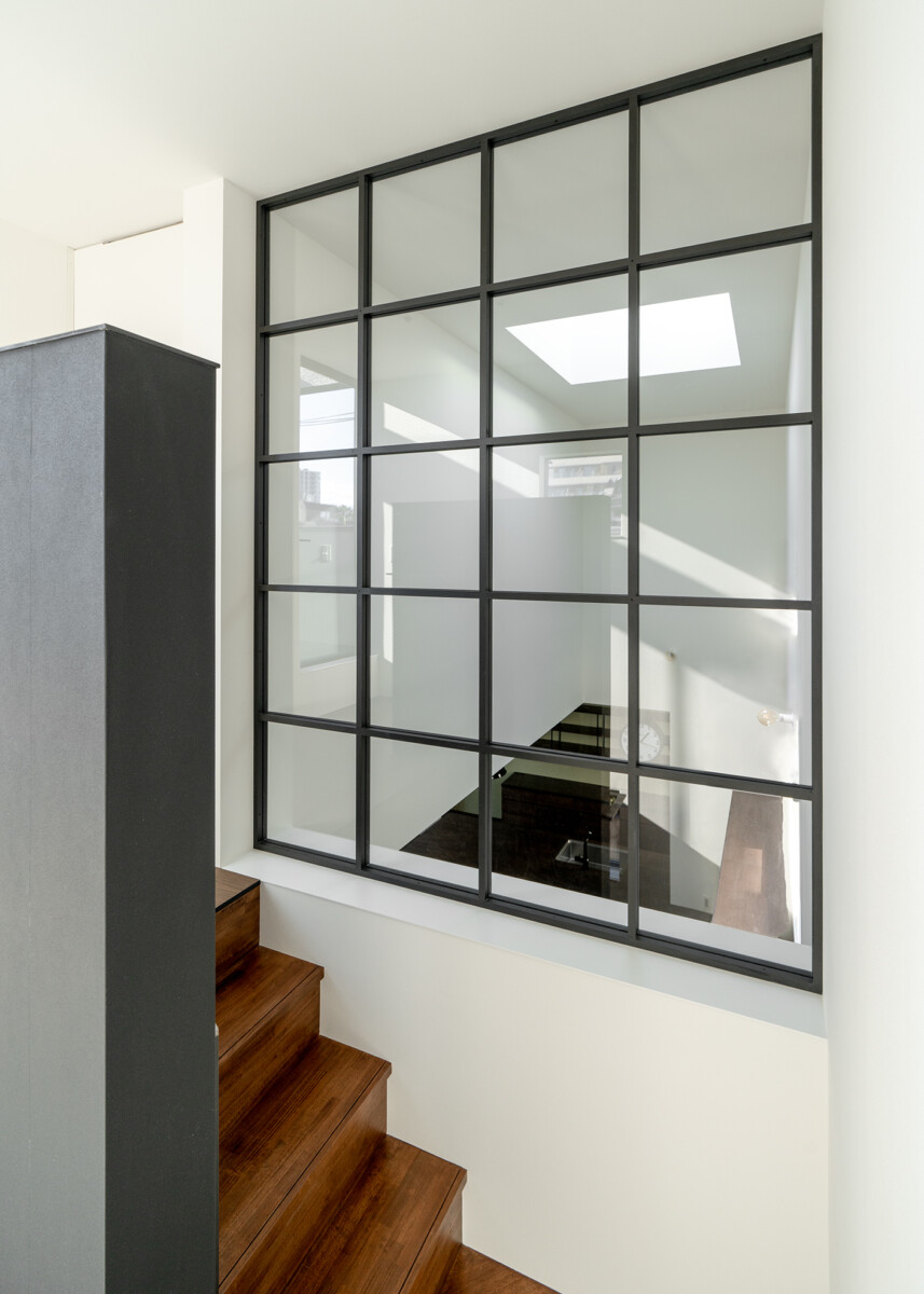 2つの塔に分節され、2つの塔に挟まれた共有テラスで、お互いが緩やかにつながる2世帯住宅。