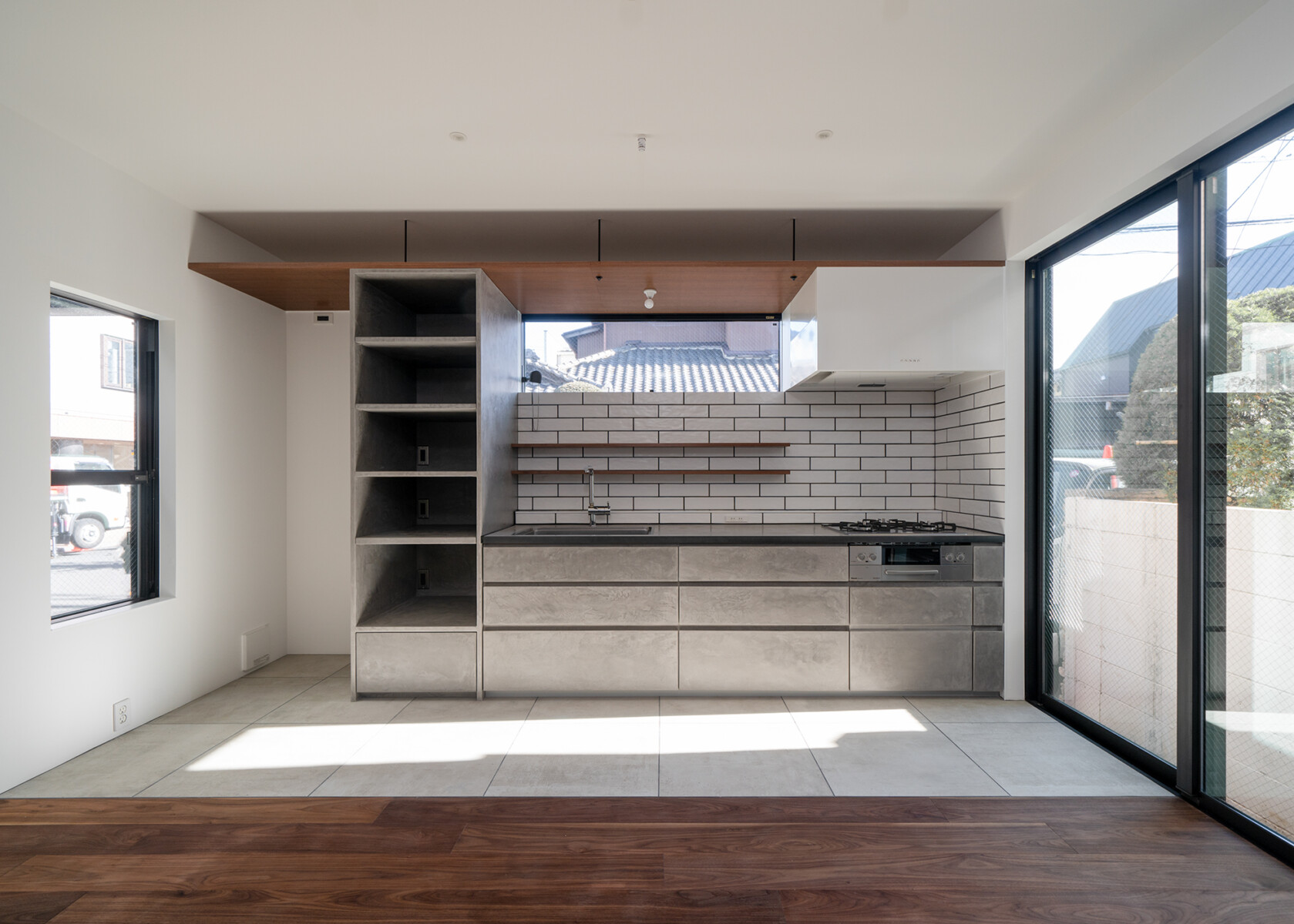 吟味された各建材のテクスチャーは経年で変化し、時間の流れを日常生活の中で可視化させる。