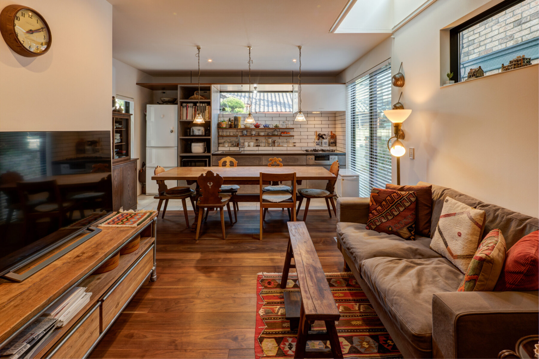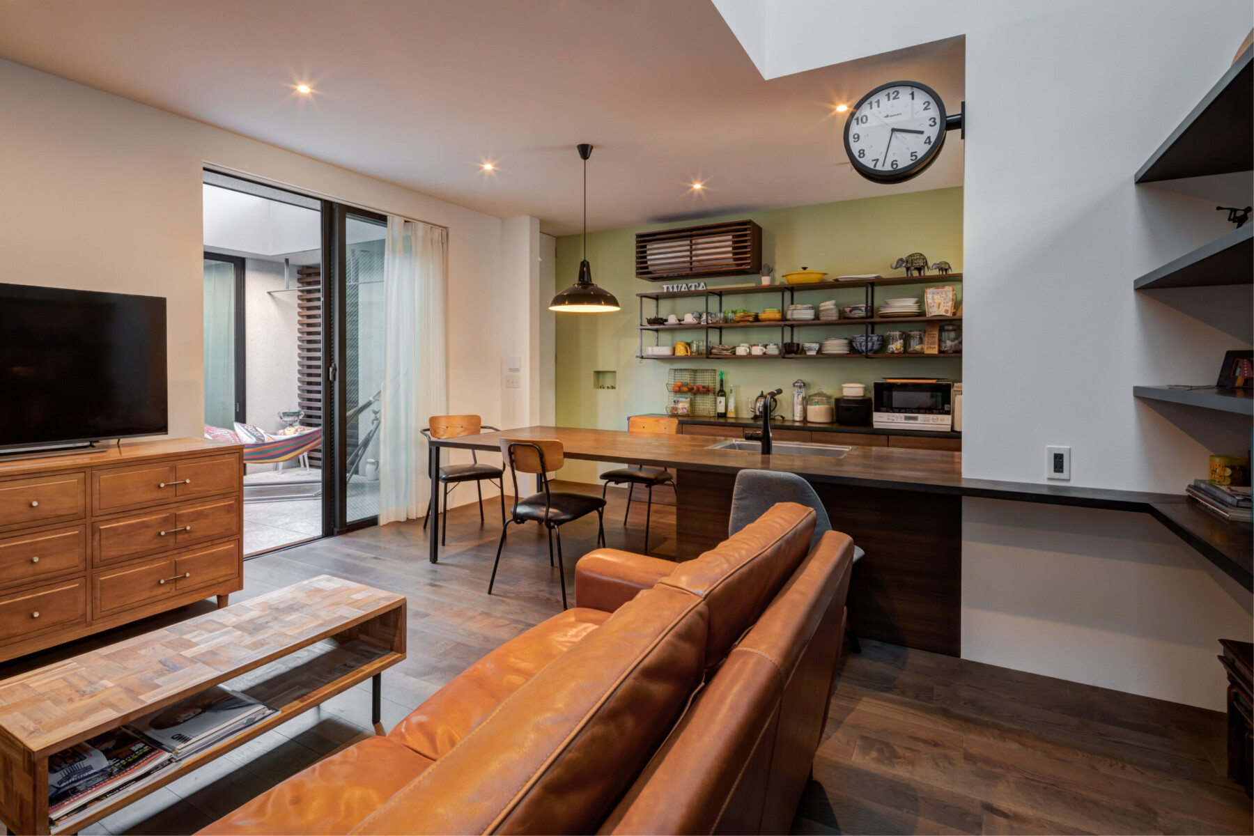 吟味された各建材のテクスチャーは経年で変化し、時間の流れを日常生活の中で可視化させる。