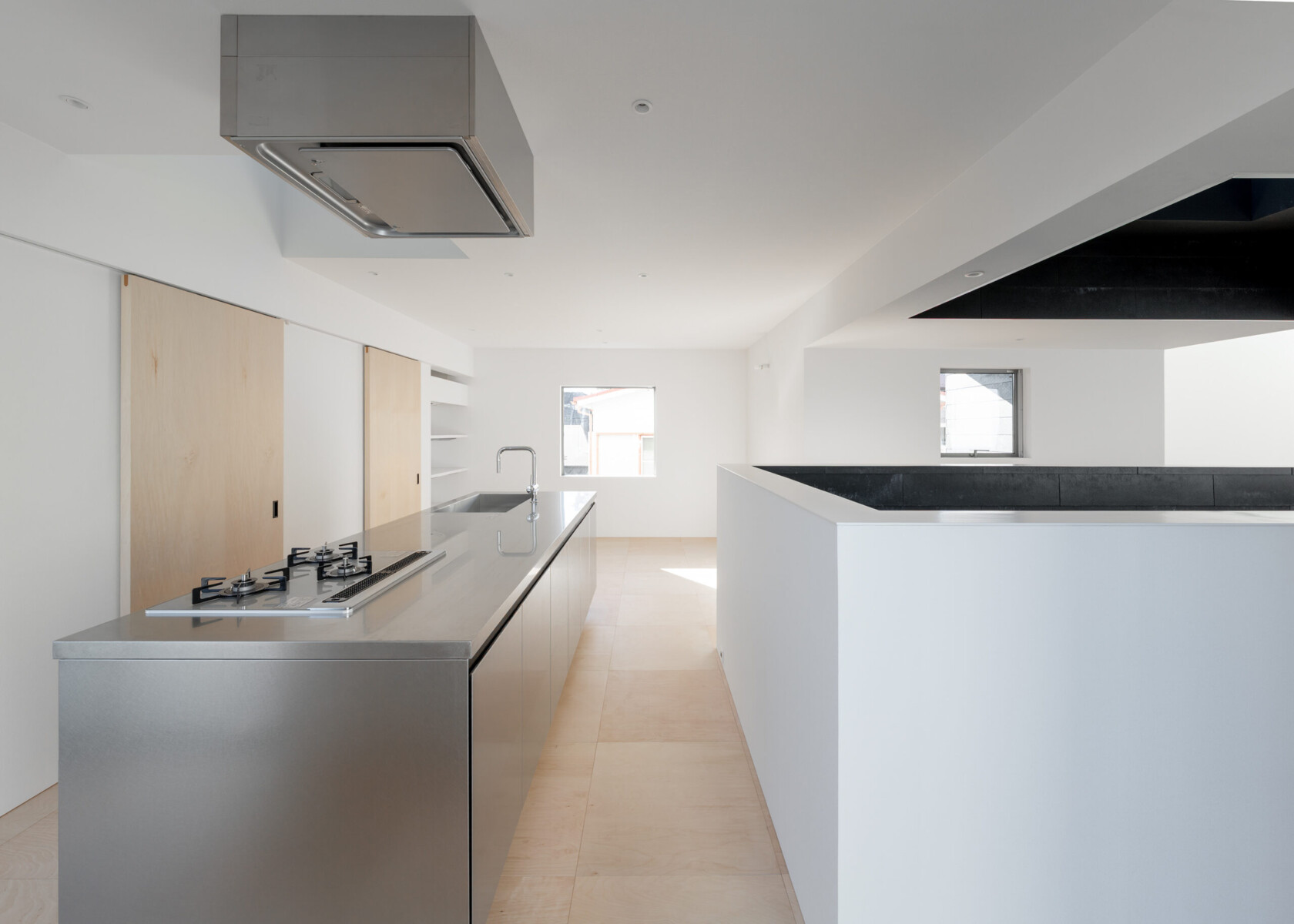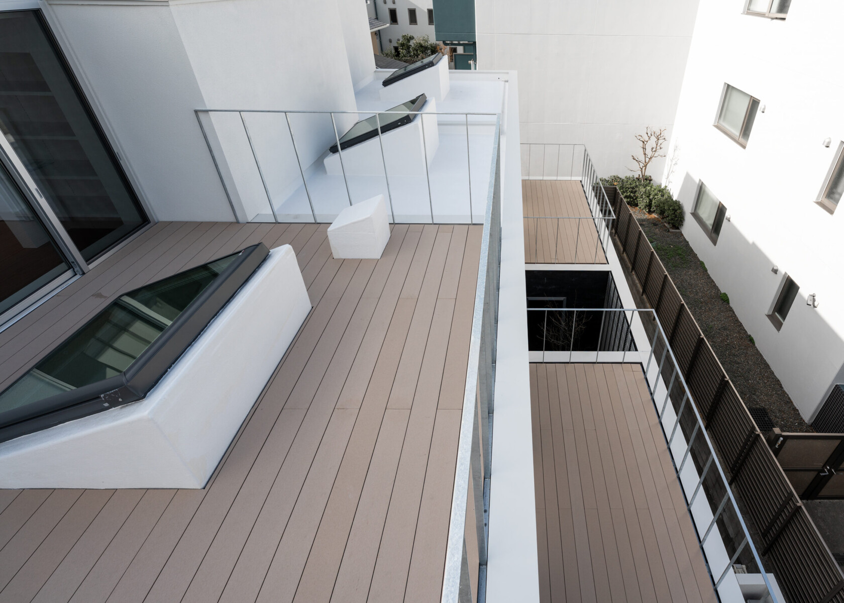 各居室や水回りは、家を3次元で貫く「street」にまとわりつくように整備され、光、影、風、音、緑、などの自然要素は「street」を介して家の至る所に循環していく。