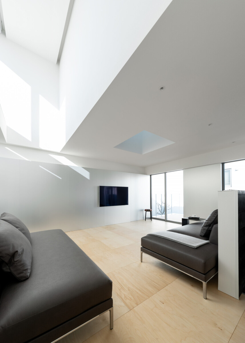 Each room and bathroom is designed to cling to the streets that run through the house in three dimensions, allowing natural elements such as light, shadow, wind, sound, and greenery to circulate throughout the house via the streets.