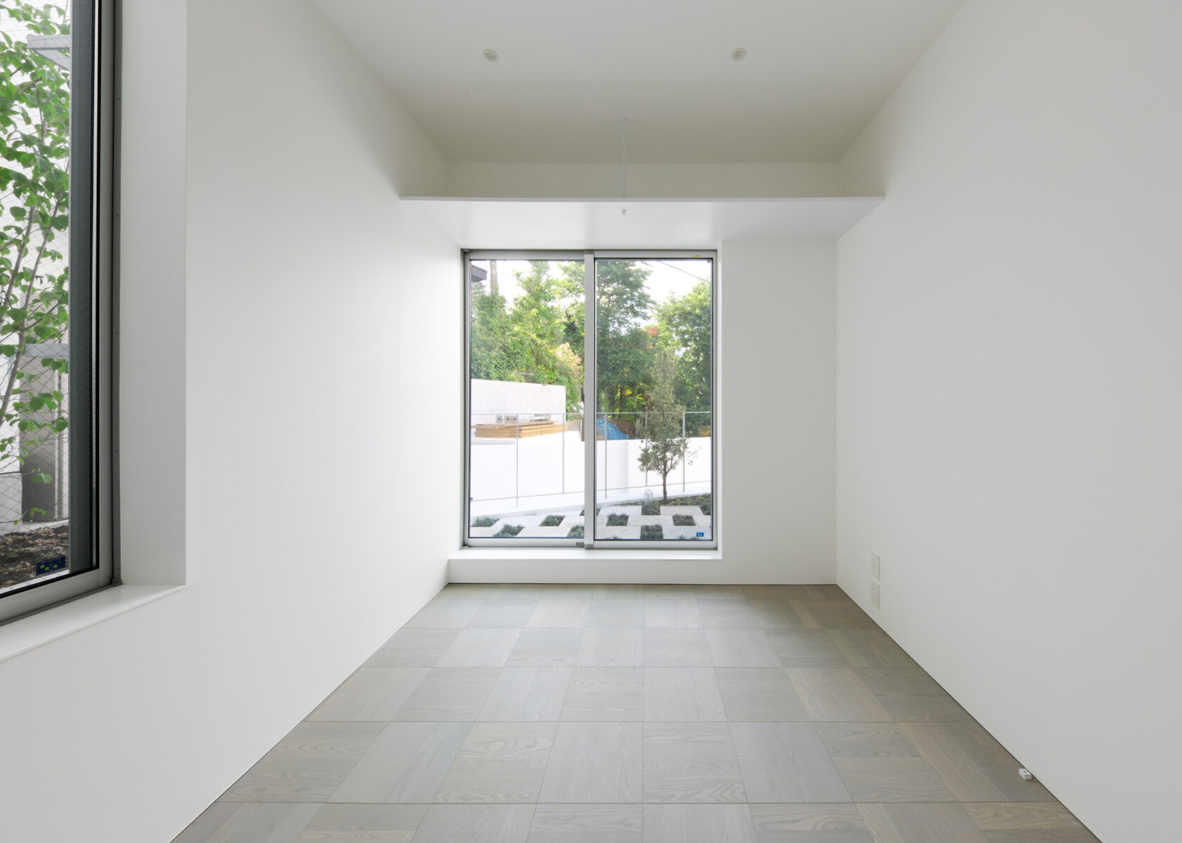 「表」の空間にデザインされた緑は、白を基調とした大小の箱の壁に影を落とし、日本特有の四季の移り変わりを可視化する。