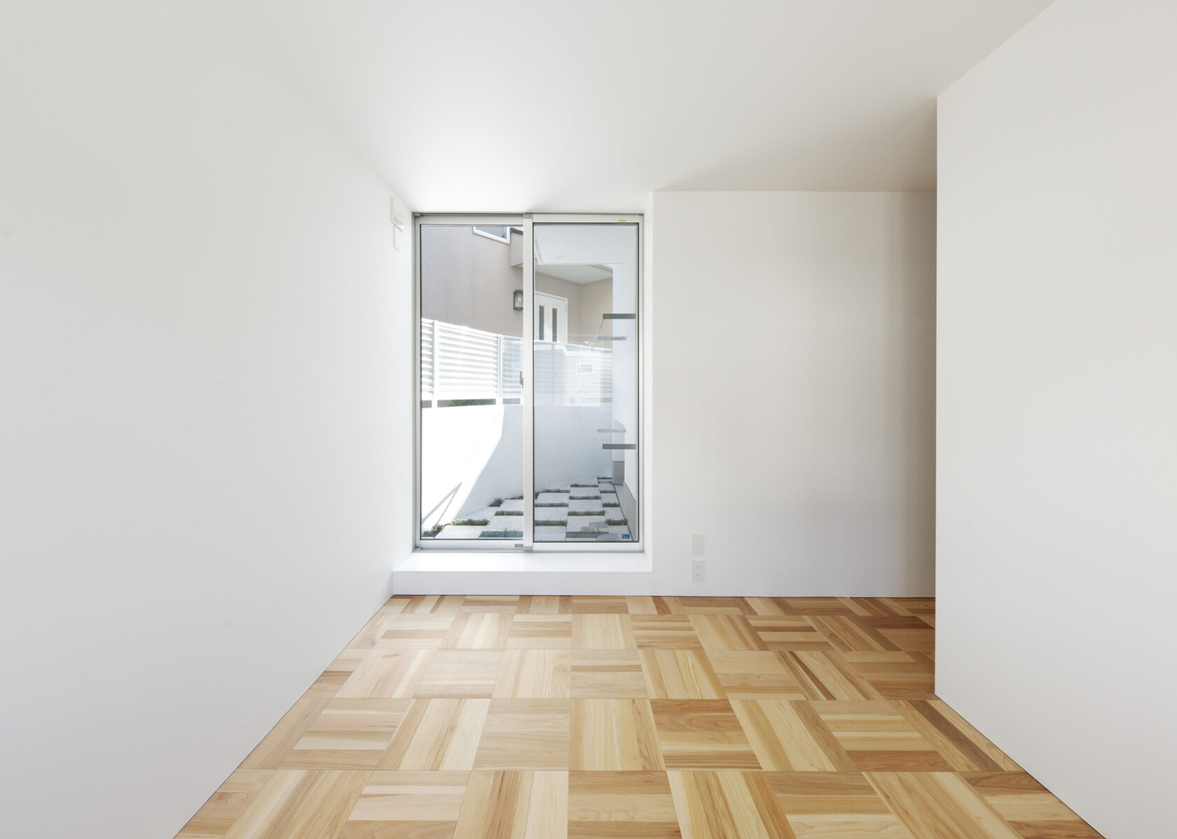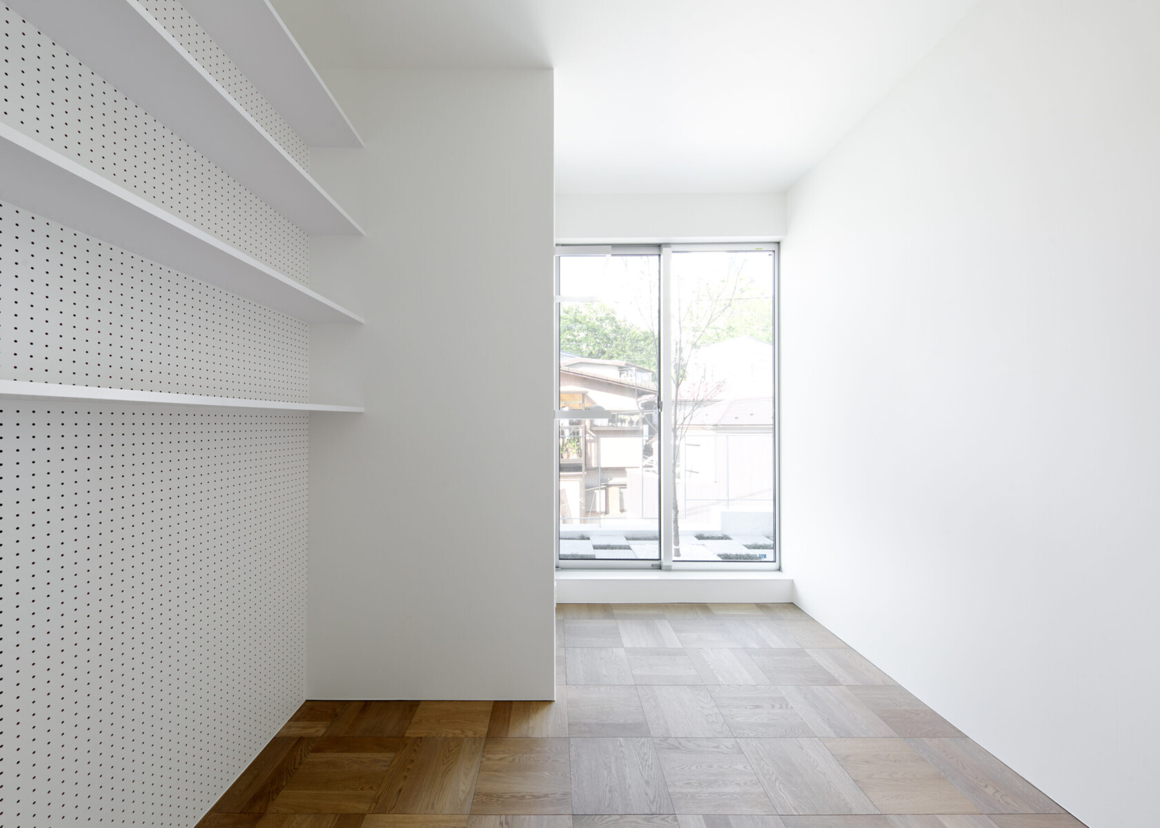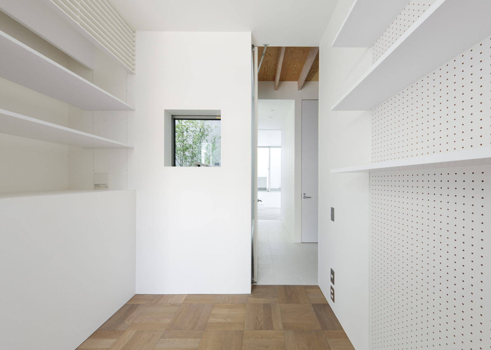 The green designed in the "table" space casts shadows on the walls of large and small boxes based on white, visualizing the transition of the four seasons unique to Japan.