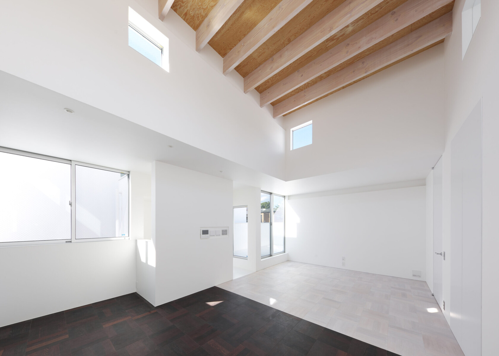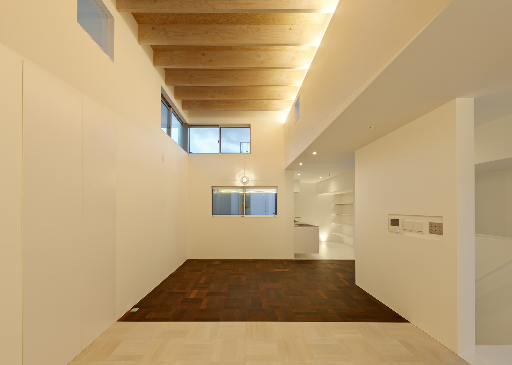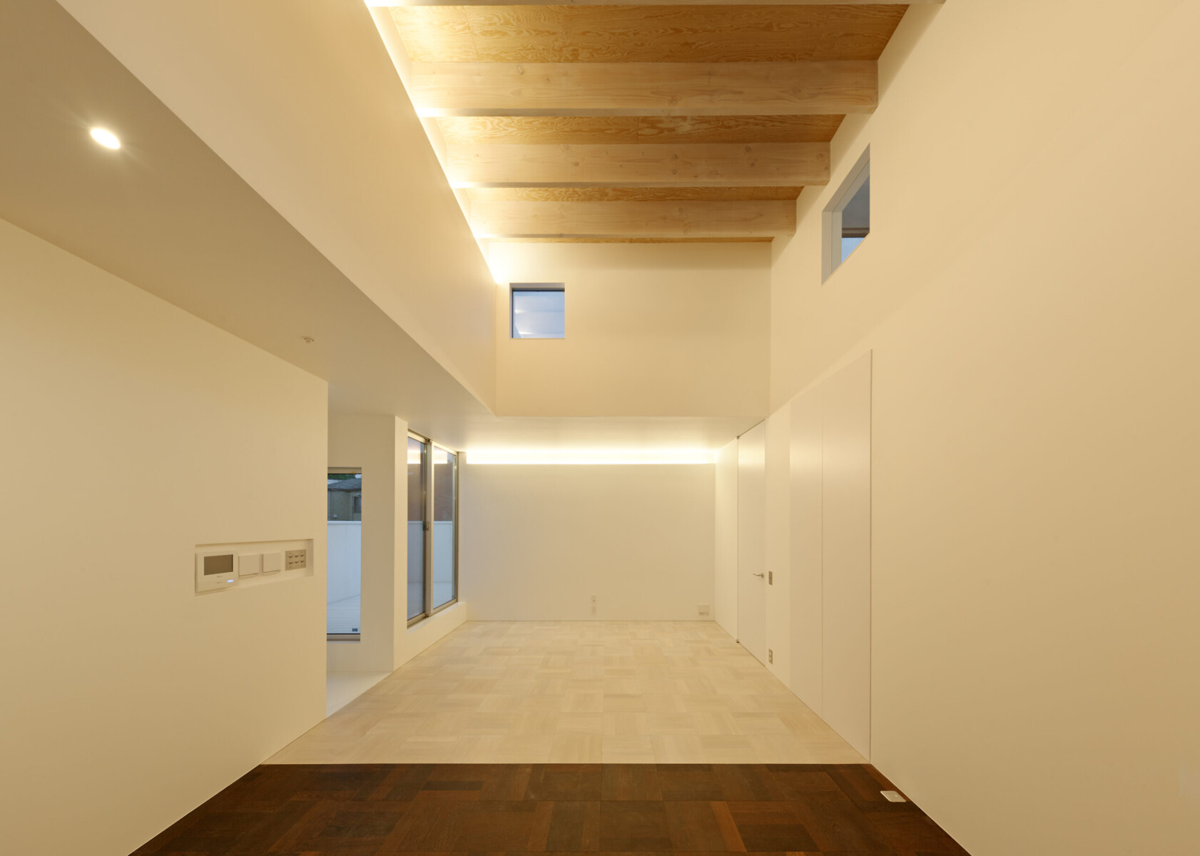 The green designed in the "table" space casts shadows on the walls of large and small boxes based on white, visualizing the transition of the four seasons unique to Japan.