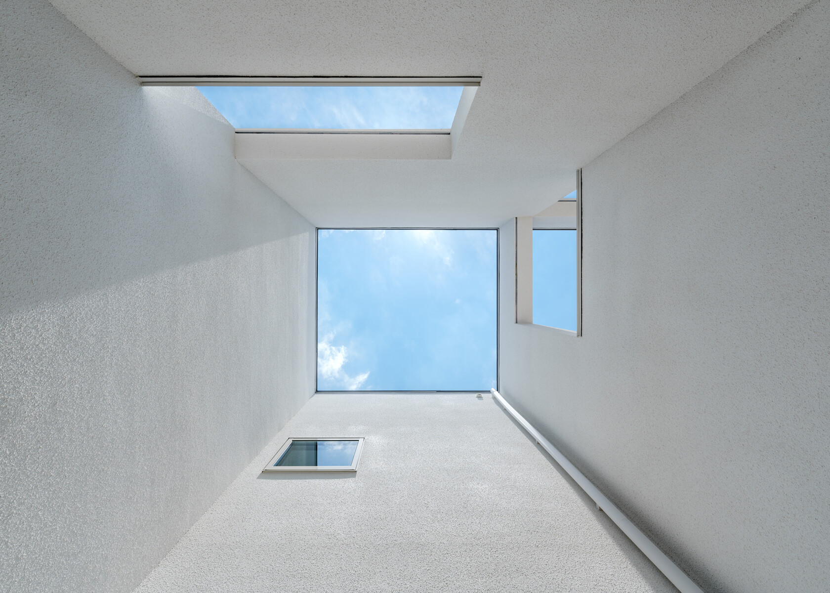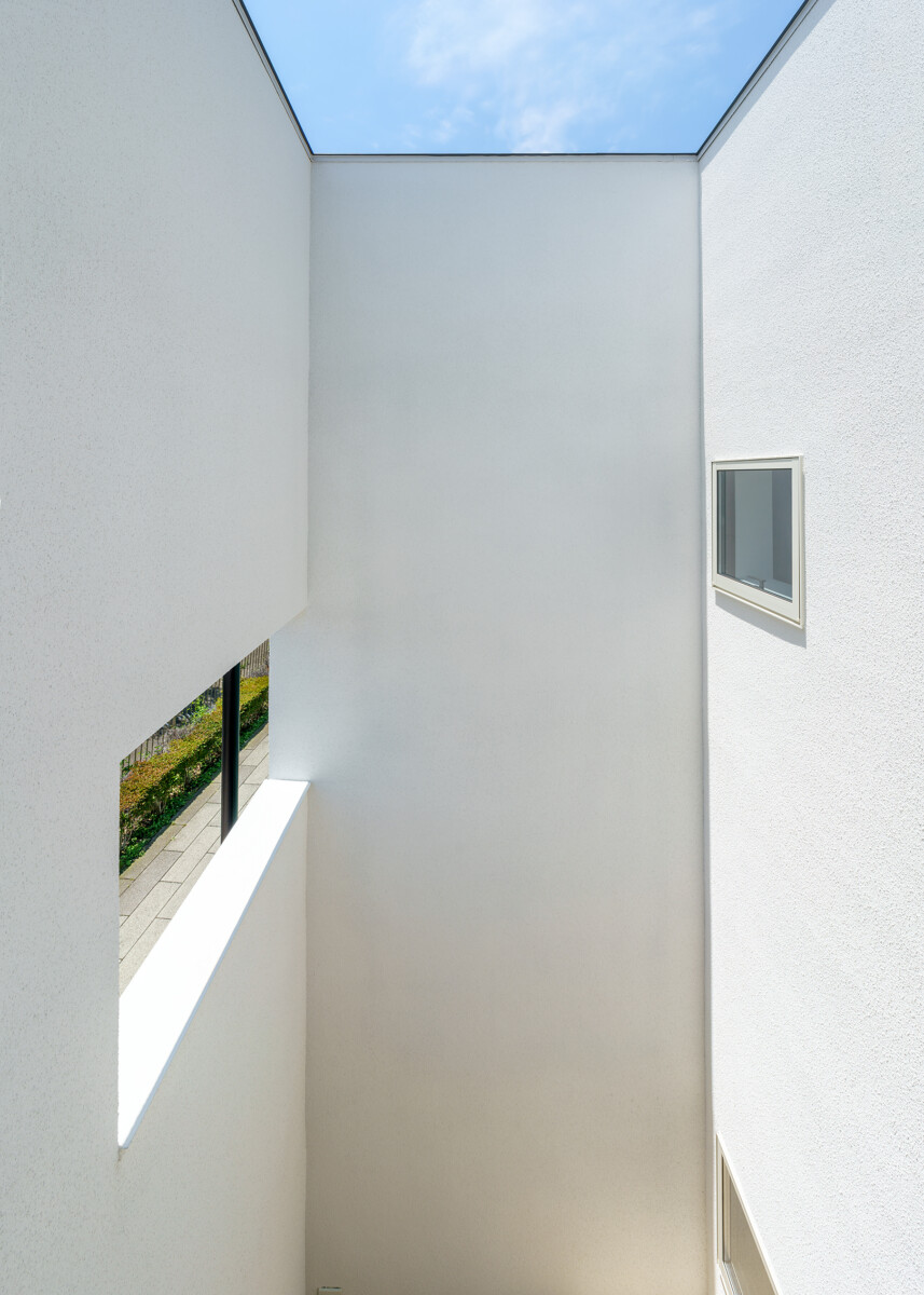 南側の川と西側の公園、自然や緑あふれる周辺環境と呼吸するような建築を目指した。