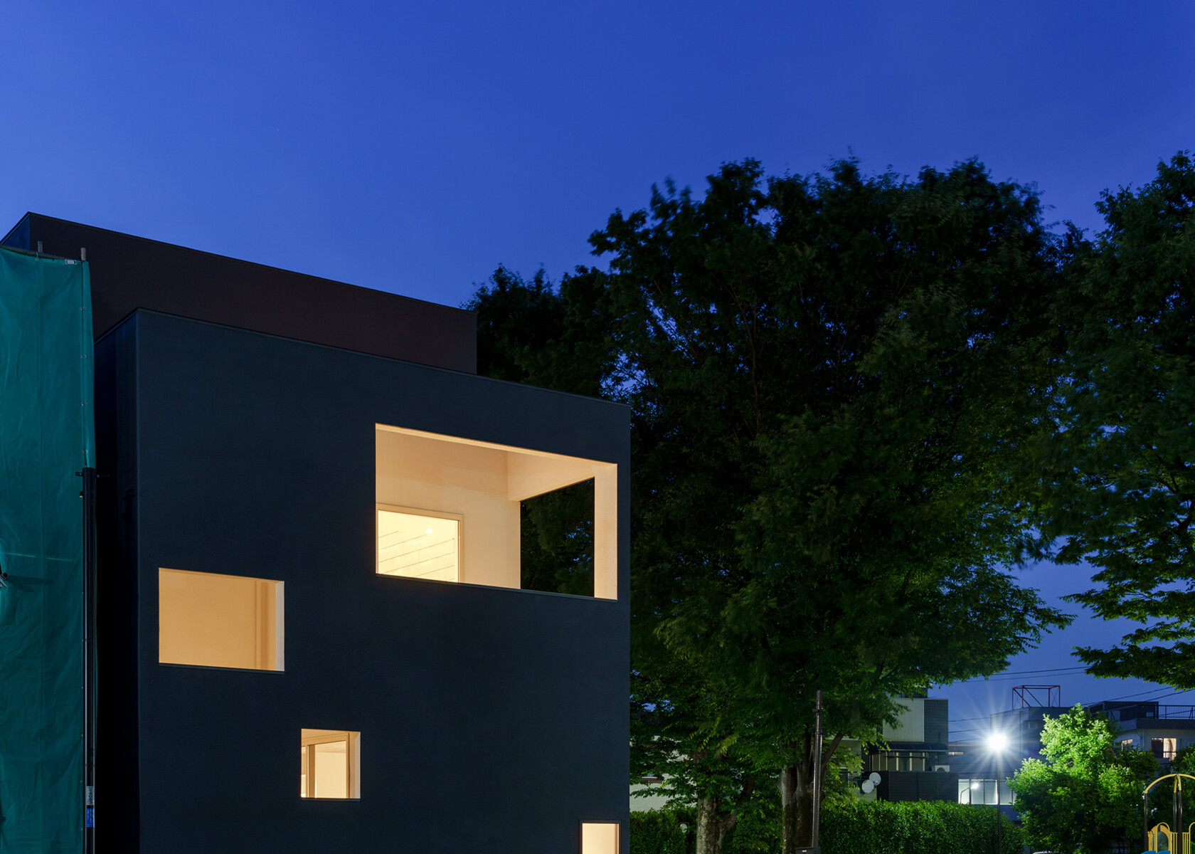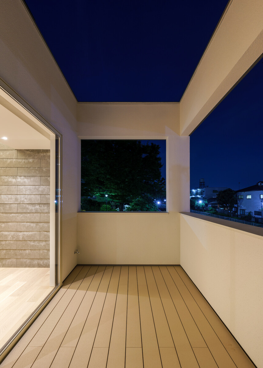 南側の川と西側の公園、自然や緑あふれる周辺環境と呼吸するような建築を目指した。