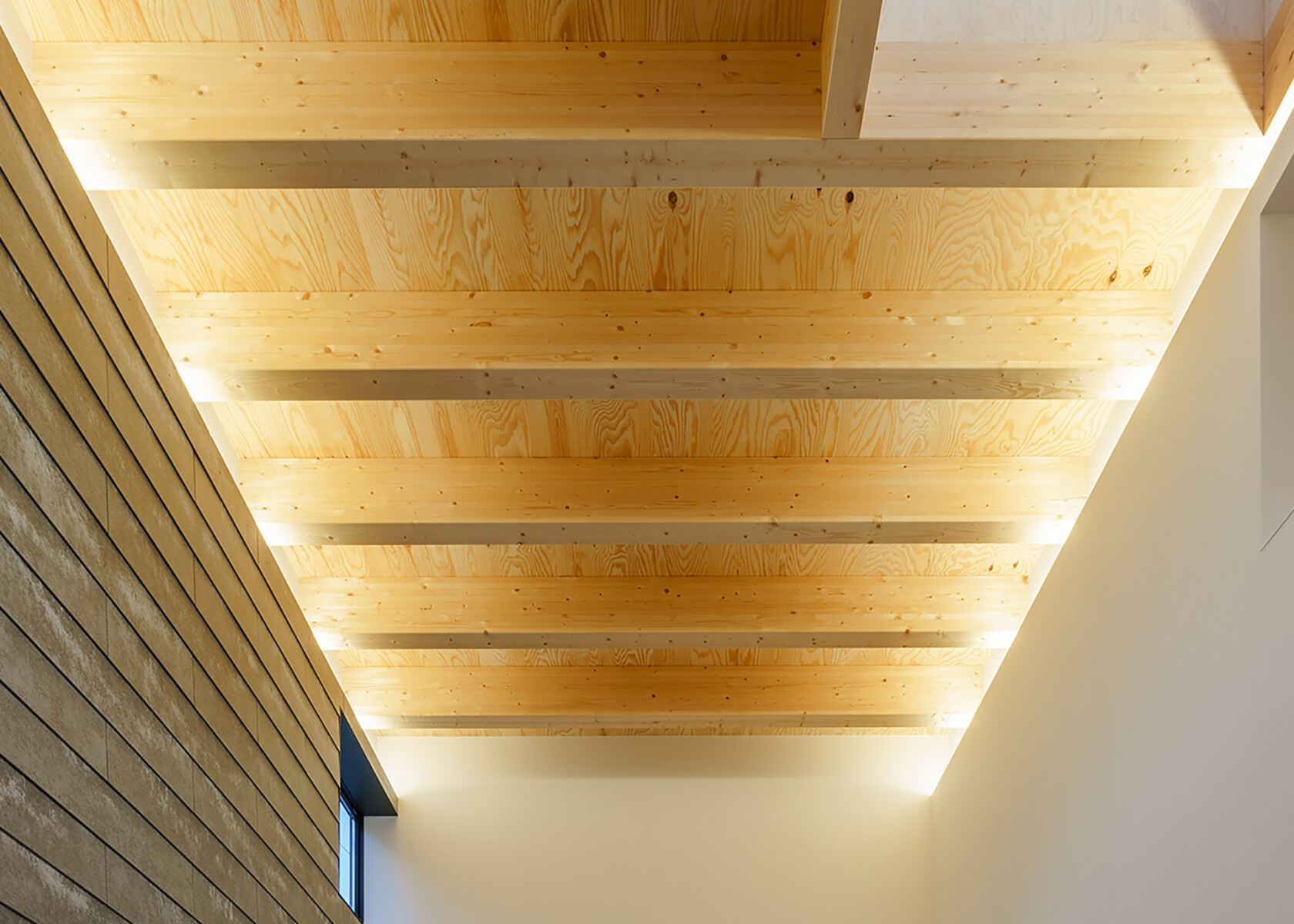 床壁天井に可能な限り天然木材を仕上げで使用する事や、
