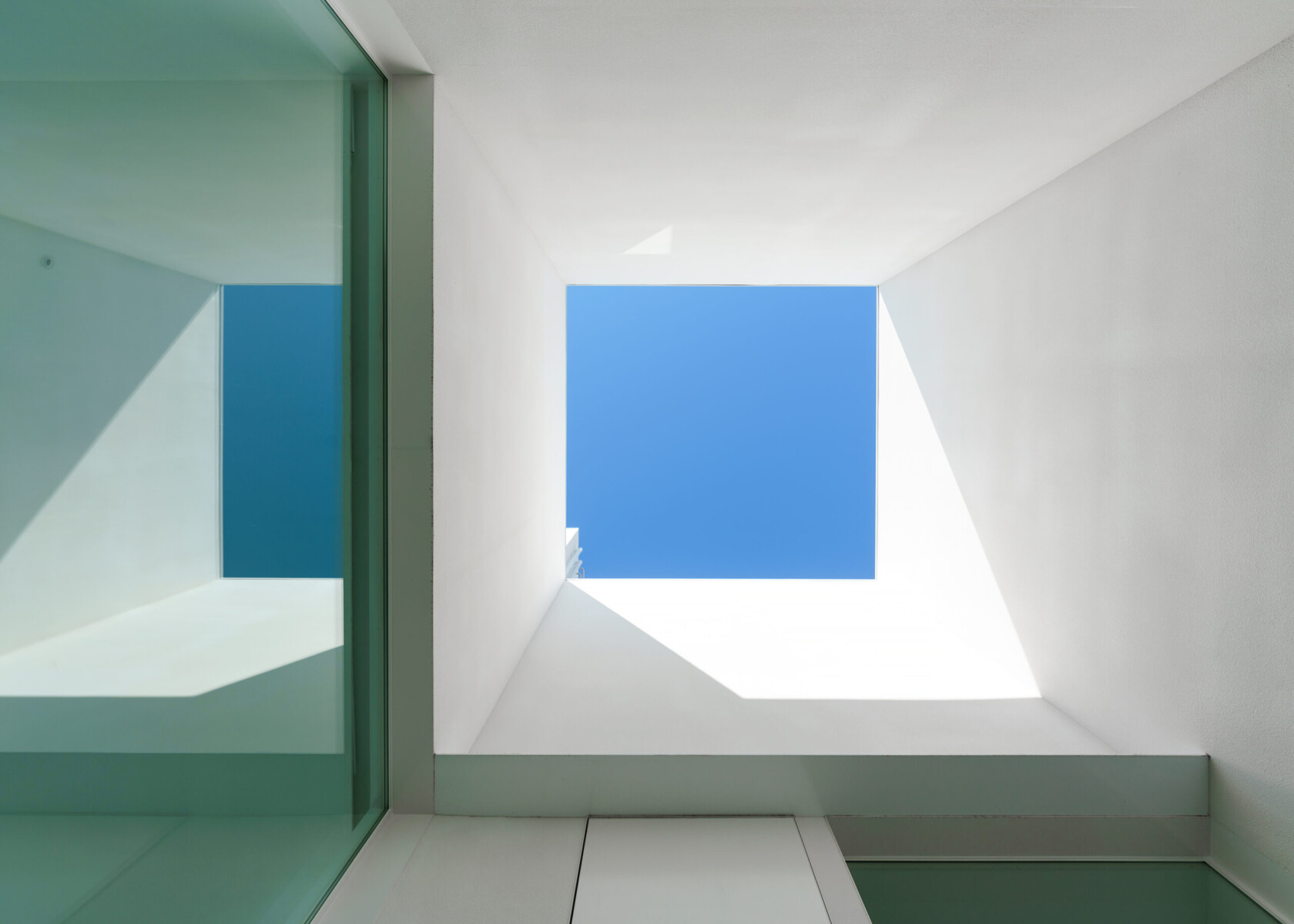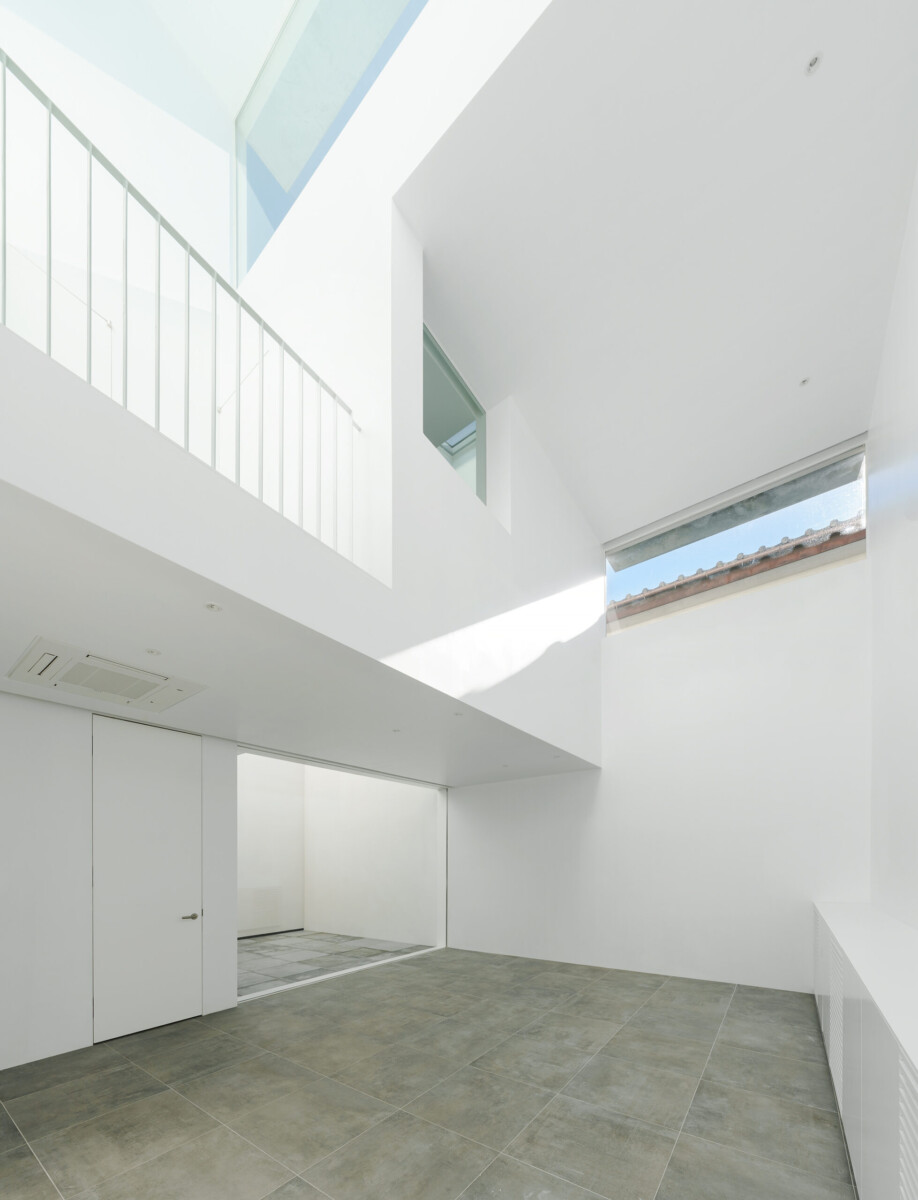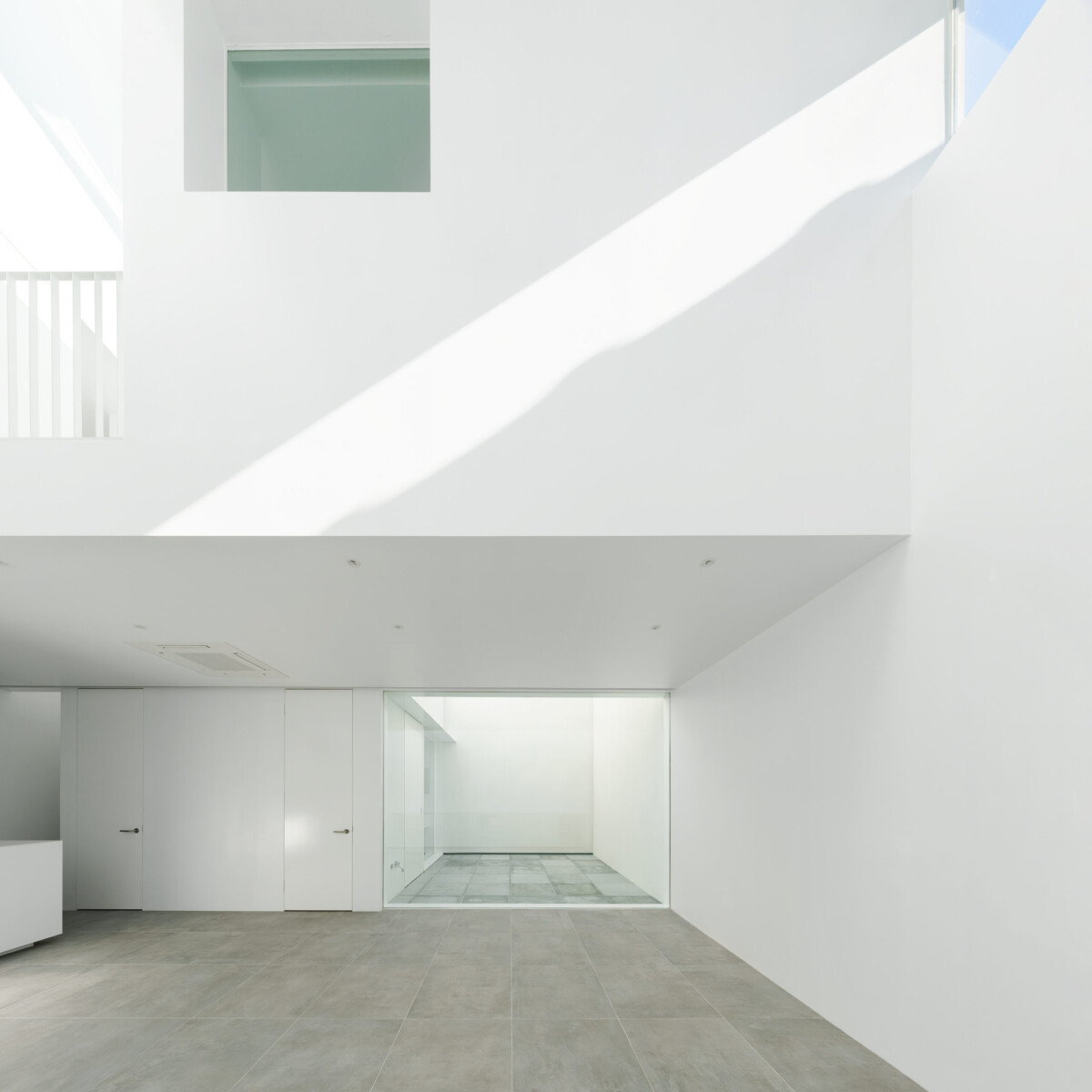 建築の中央付近に位置する三層の吹き抜けを中心に光と影が躍動し、建築内の至る所で清々しい時間が流れる。