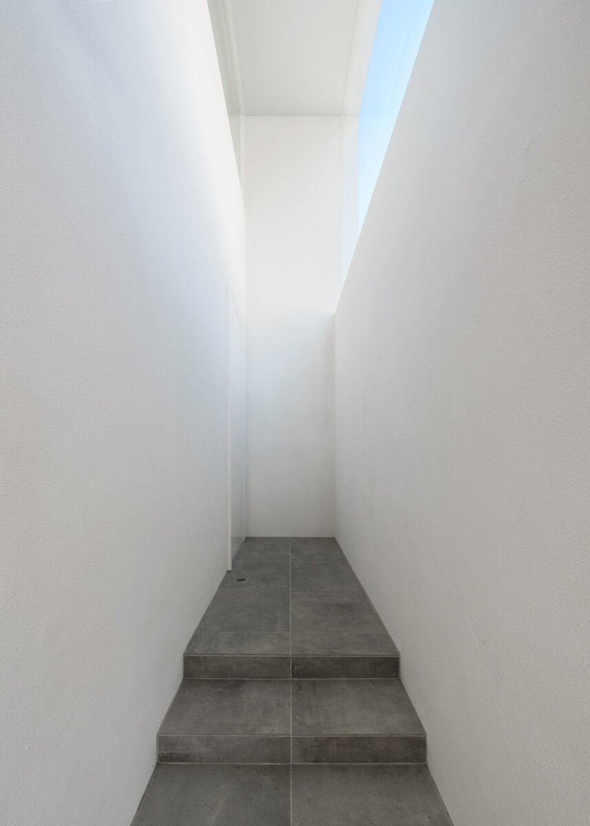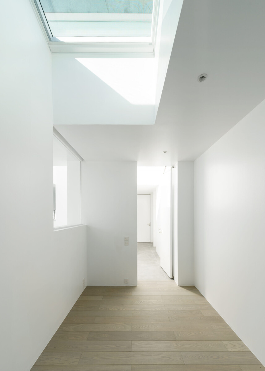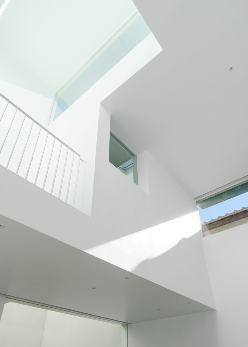 建築の中央付近に位置する三層の吹き抜けを中心に光と影が躍動し、建築内の至る所で清々しい時間が流れる。