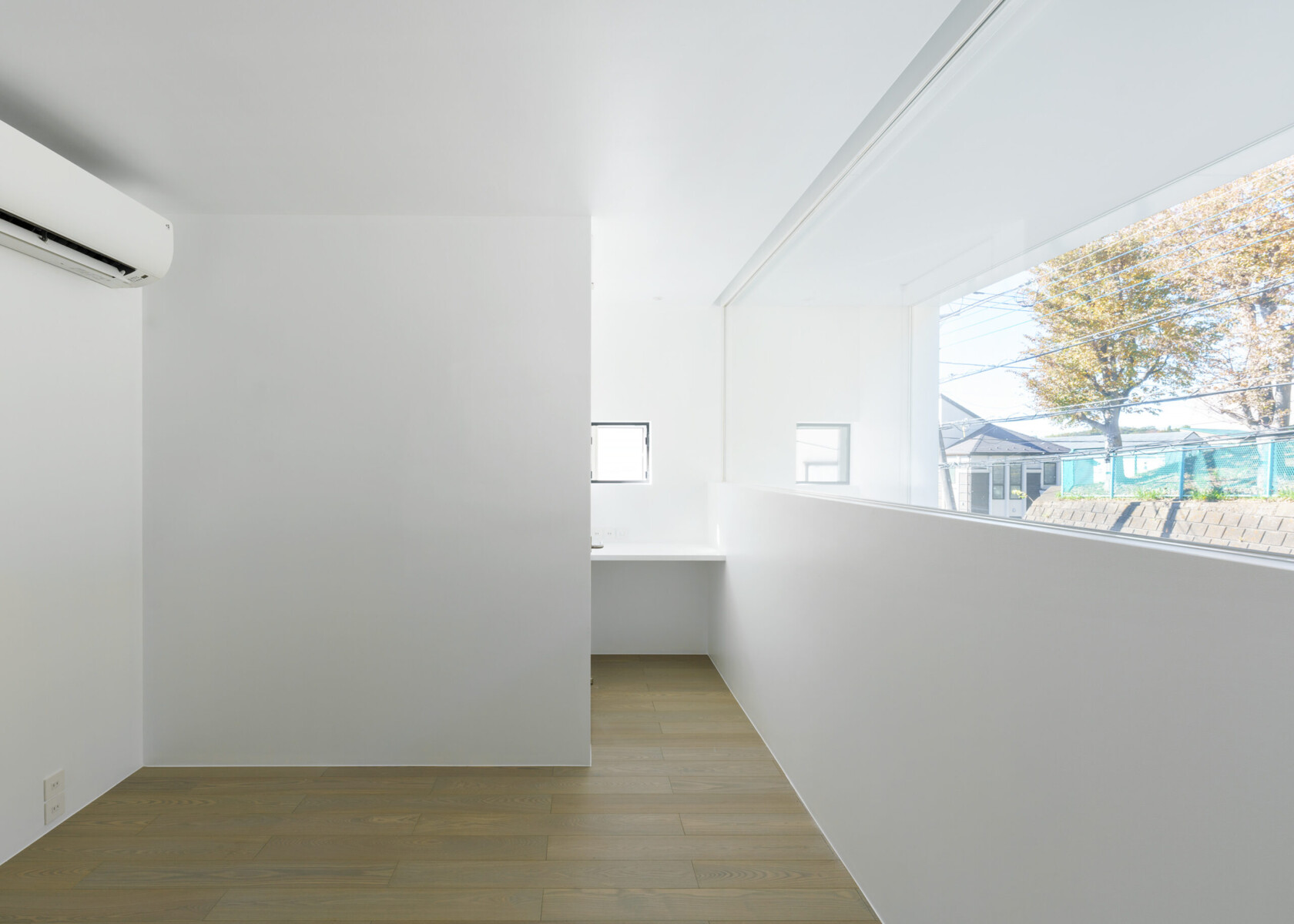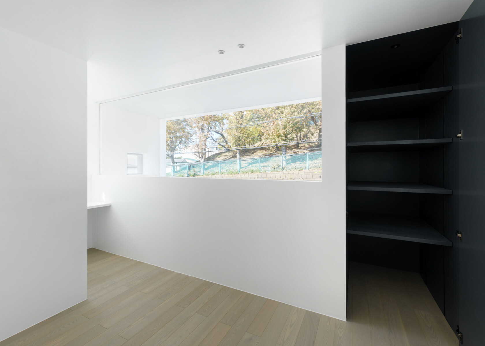 ピクチャーウィンドウを効果的に操り、空間と空間の距離感を曖昧に定義する事で、ここにしか存在しない様相を意図的に作り出している。