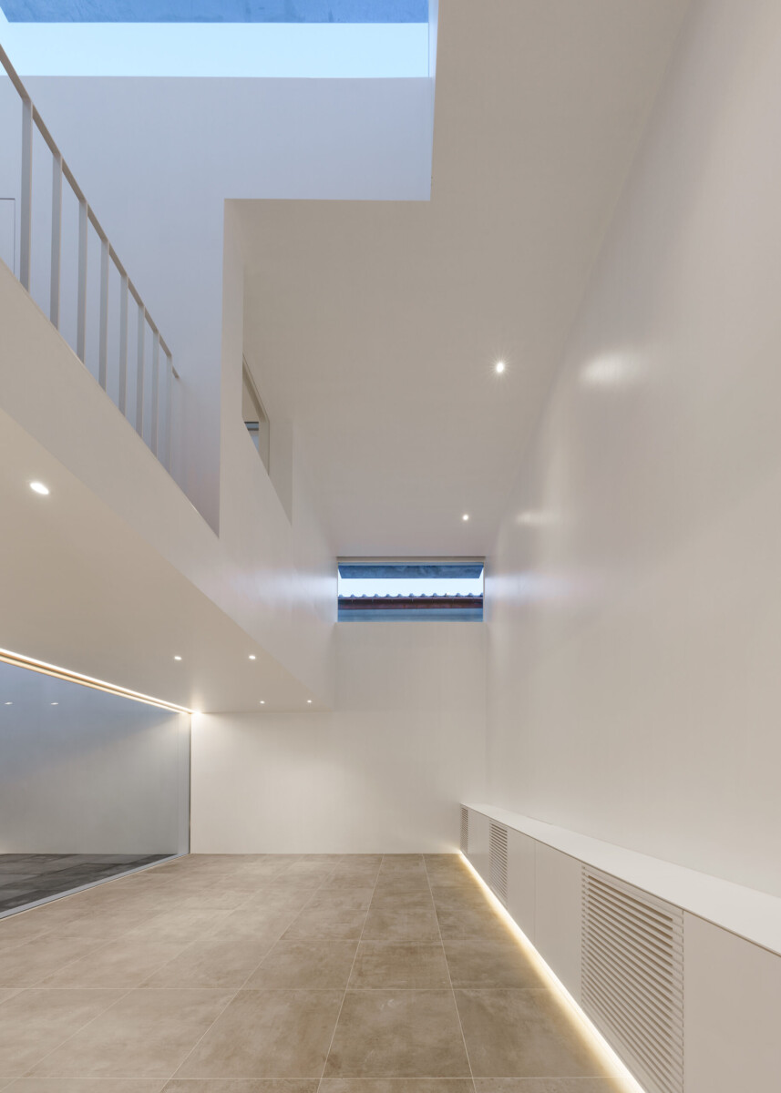 建築の中央付近に位置する三層の吹き抜けを中心に光と影が躍動し、建築内の至る所で清々しい時間が流れる。