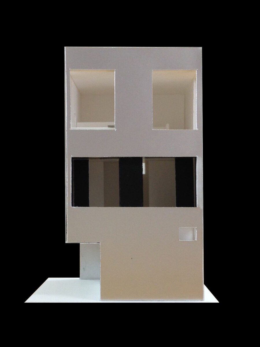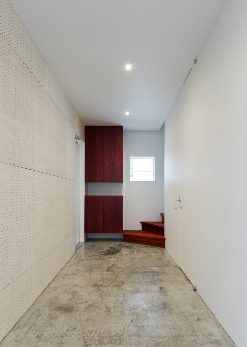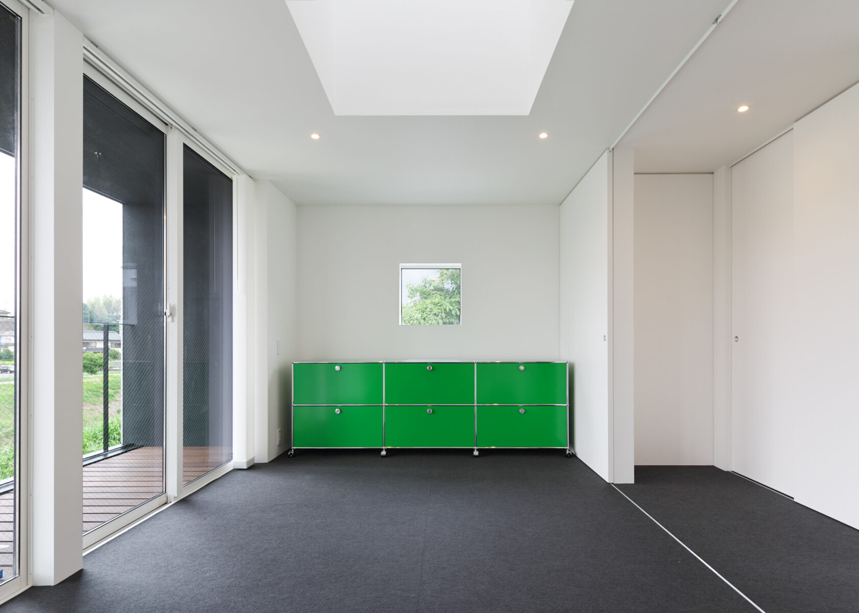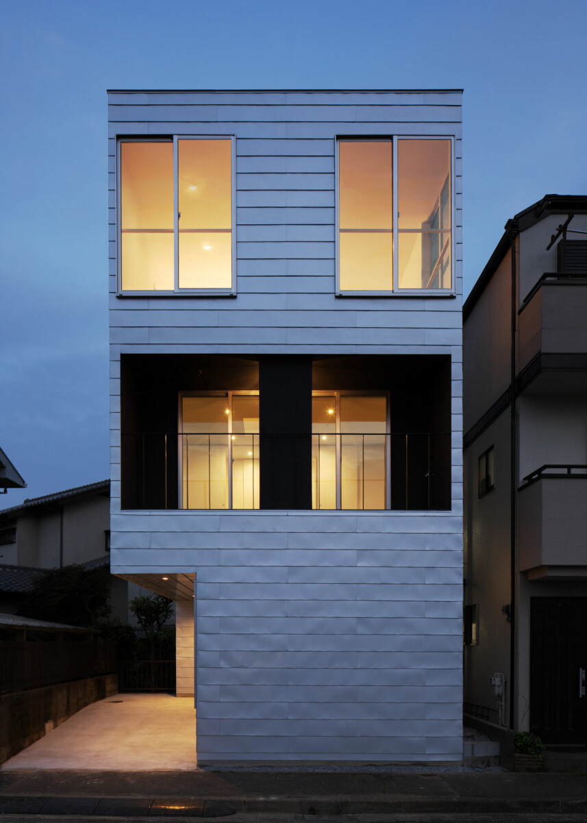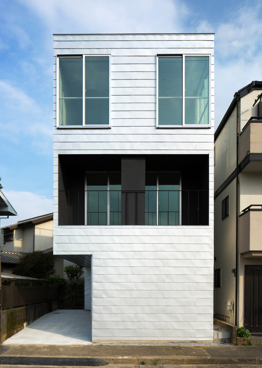 ミニマムスケールでありながら、限界まで高く確保した各天井高さが、縦と横の比率を混乱させる。